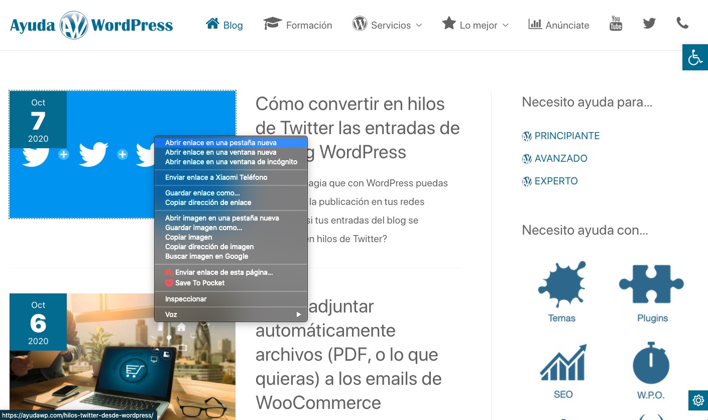 Guarda los cambios y ahora ya no tendrán enlaces a las entradas las imágenes destacadas del blog, solo el título, o si lo has activado, el botón de «Leer más».
