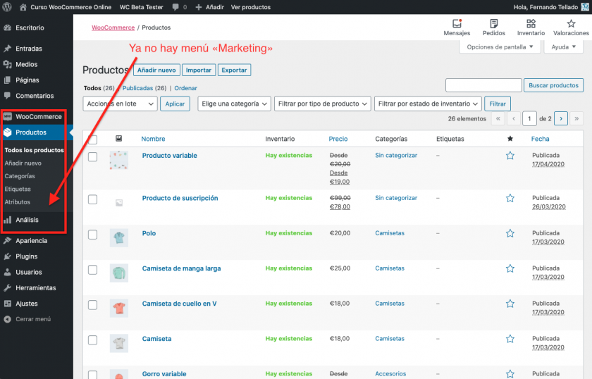 Desde la versión 4.1 de WooCommerce, los creadores de este magnífico plugin nos han regalado un nuevo elemento en el menú de administración de nuestro WordPress, el tonto, inútil, molesto, innecesario e incomprensible menú llamado «Marketing»
