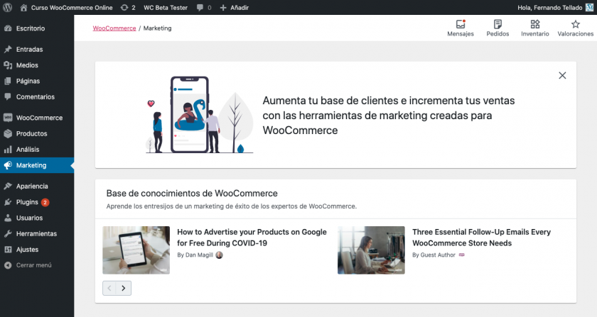add_filter( 'woocommerce_helper_suppress_connect_notice', '__return_true' );Magnífica información Fernando! Como siempre gracias.