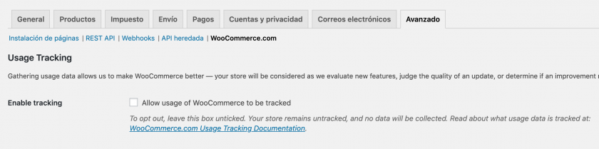 WooCommerce ha declarado que no rastrearán los sitios que opten por no participar o que no tengan conexión con WooCommerce.com, y además tienes la opción de quitar el seguimiento, en WooCommerce > Ajustes > Avanzado > Woocommerce.com > Seguimiento de uso, para cambiar las preferencias en cualquier momento.