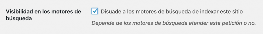Si, por el contrario, has indicado que quieres disuadir a los motores de búsqueda, marcando la casilla de selección…
