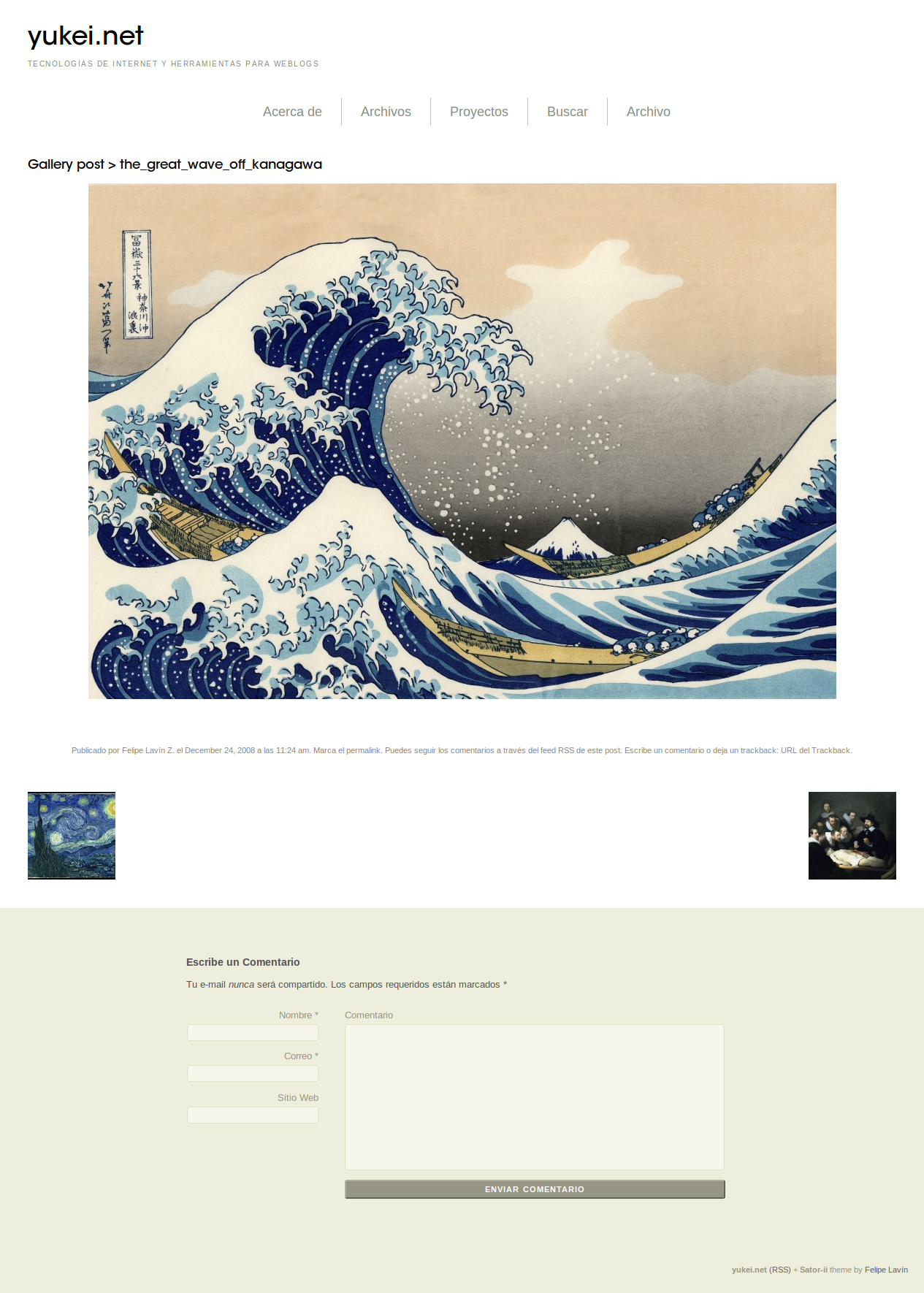 Además, trae todo lo que debería tener cualquier tema completo para WordPress: soporte para tags, galerías y leyendas de imágenes, Gravatar, soporte para localización (puedes crear tus propias traducciones), una plantilla especial para imágenes, y por supuesto, soporte para widgets.