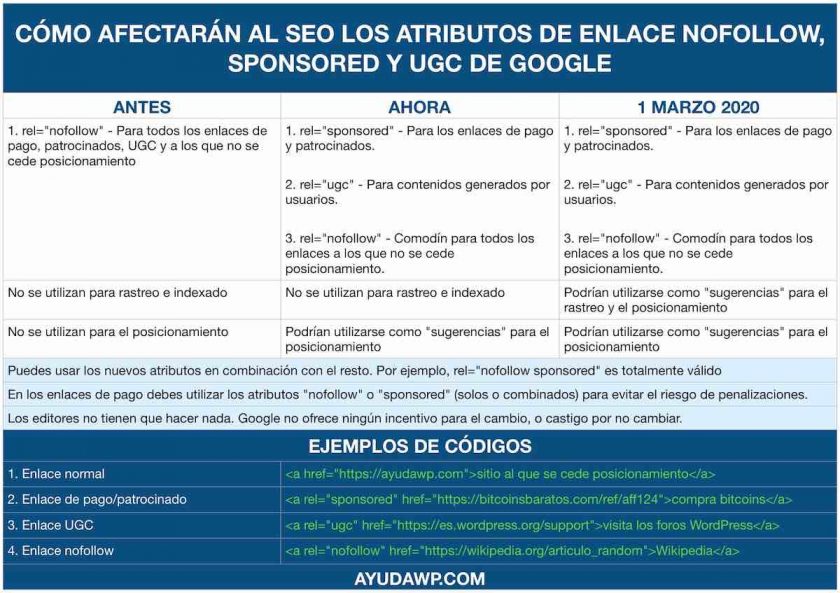 Aparte, a partir de esa fecha sabremos (se supone) la funcionalidad real para el posicionamiento, o no, de las etiquetas nofollow, sponsored y ugc.