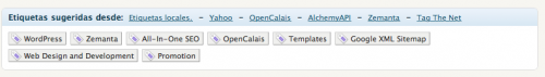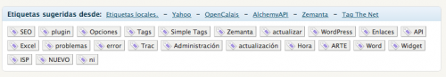 No solo ya funciona perfectamente sino que ha introducido unos elementos nuevos a destacar. Y es que si ya usabas el widget del editor de «Etiquetas sugeridas«, ahora viene con esteroides. Le han añadido a los ya existentes nuevas fuentes de sugerencia de etiquetas, como Zemanta, AlchemiAPI y OpenCalais, y de verdad que merece la pena.