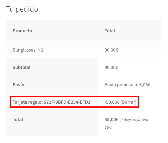 Lo ideal, y es el enfoque del plugin, es que sea el destinatario quien decida en qué gastar la tarjeta regalo, a pesar de la sugerencia, pues ya sabes que no siempre tu padre, tío, novio, conoce tus gustos, y de este modo nos evitamos las molestas (para todos) devoluciones.