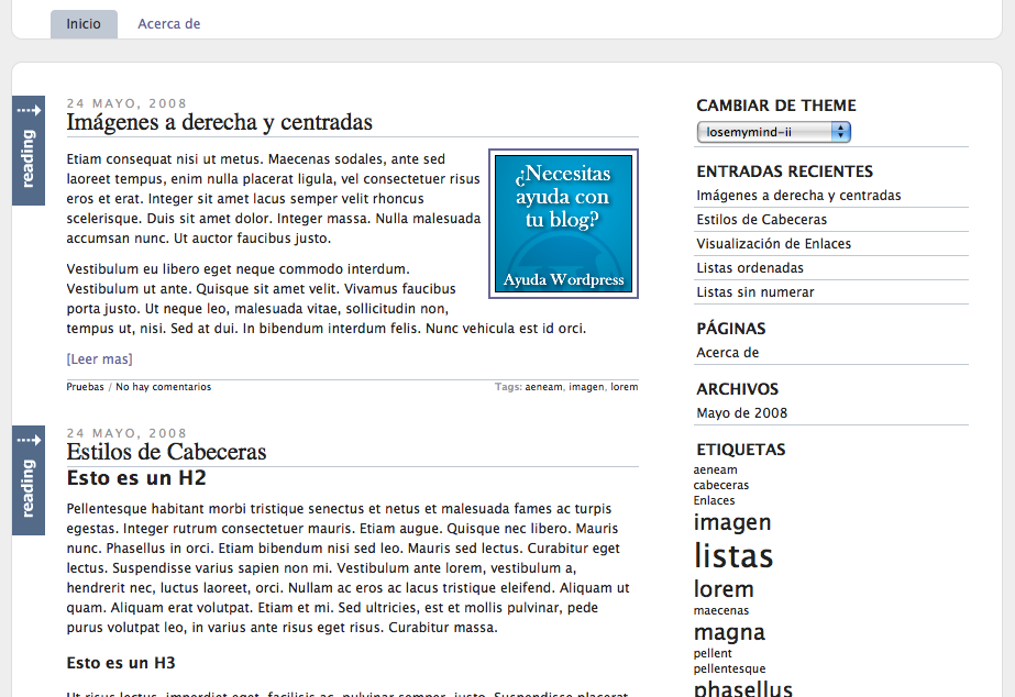 Este theme, LoseMyMind II ciertamente me encanta. No solo por su aspecto blanco, claro y minimalista sino por su elegancia, por los efectos AJAX con jQuery y los complementos que trae, también porque se centra en el contenido, siendo perfecto para blogs personales o sitios dedicados a compartir buenos textos.