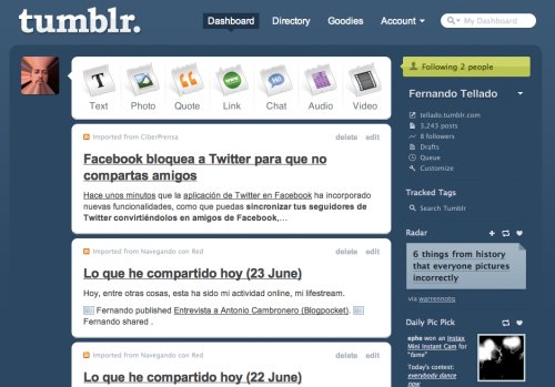 Aunque soy también un apasionado de Tumblr, un servicio de blogging con muchas posibilidades y cada vez mejor y más intuitivo, al mismo tiempo estoy seguro de que tarde o temprano, si solo puedes mantener un sitio, terminarás migrando a WordPress alojado en un servidor propio.