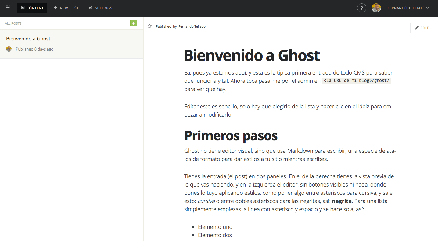 Para muchos de nosotros Ghost todavía está más lejos de nuestro alcance de lo que nos gustaría, por cuestiones técnicas básicamente. Así que, o buscas un hosting que lo incluya en sus planes, o de momento puedes usar WordPress como si fuese Ghost, ahí es nada.