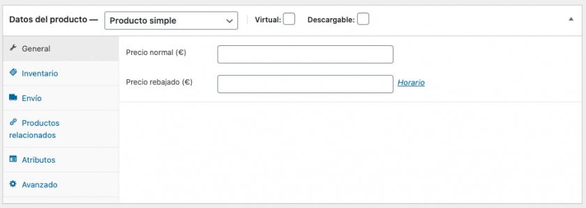 - Producto simple: Productos sin opciones como talla, color, etc.