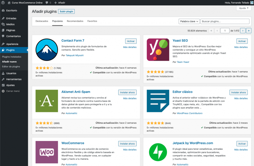 WooCommerce es un tipo de aplicación llamada plugin, que añaden a WordPress características que por defecto no ofrece, y hay más de 50.000, todos gratuitos, y se instalan muy fácilmente.