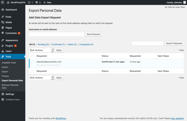 - Integración con el exportador de datos que vendrá pronto en WordPress, también para cumplir el RGPD