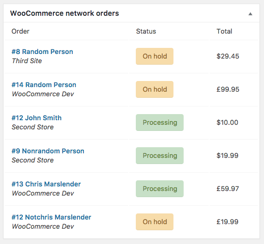 Si tienes una instalación de WordPress multisitio con varias tiendas online con WooCommerce, desde el sitio principal ahora tendrás un widget que mostrará los últimos pedidos de toda la red.