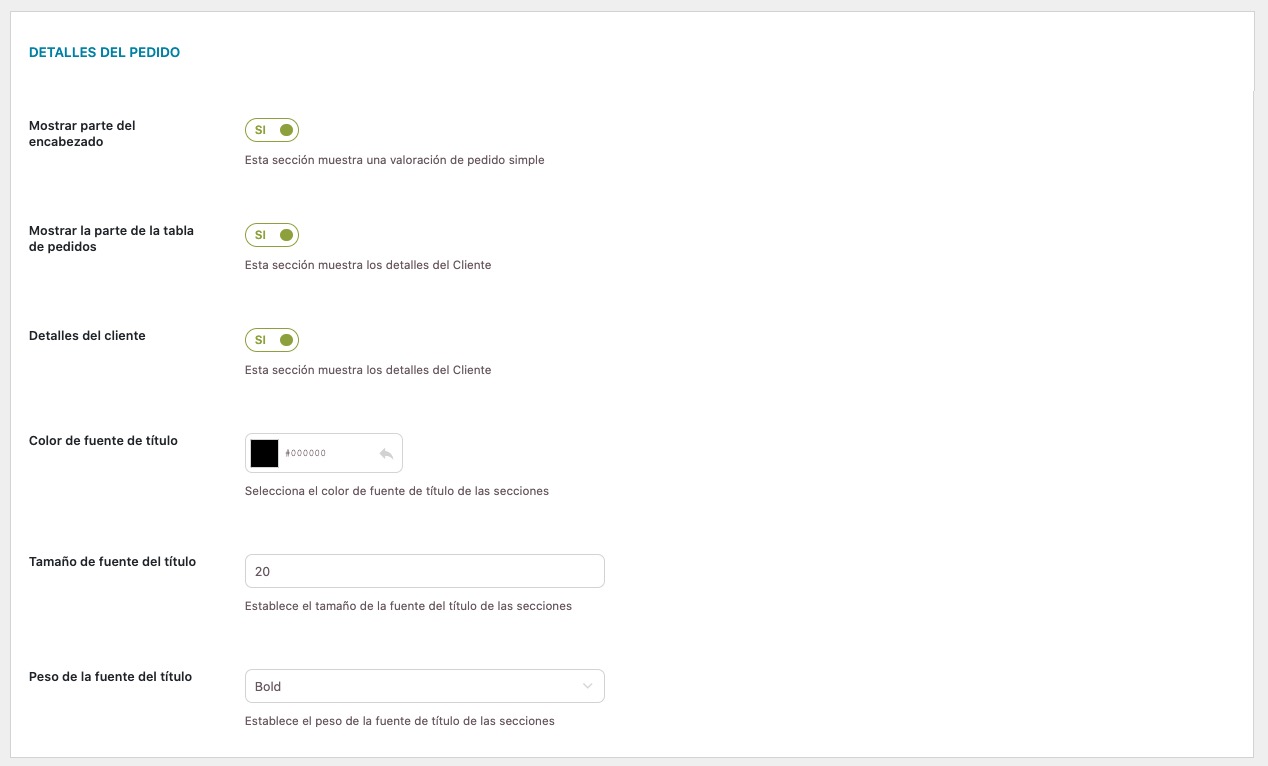 Qué quieres que se muestre y qué no en el resumen del pedido.