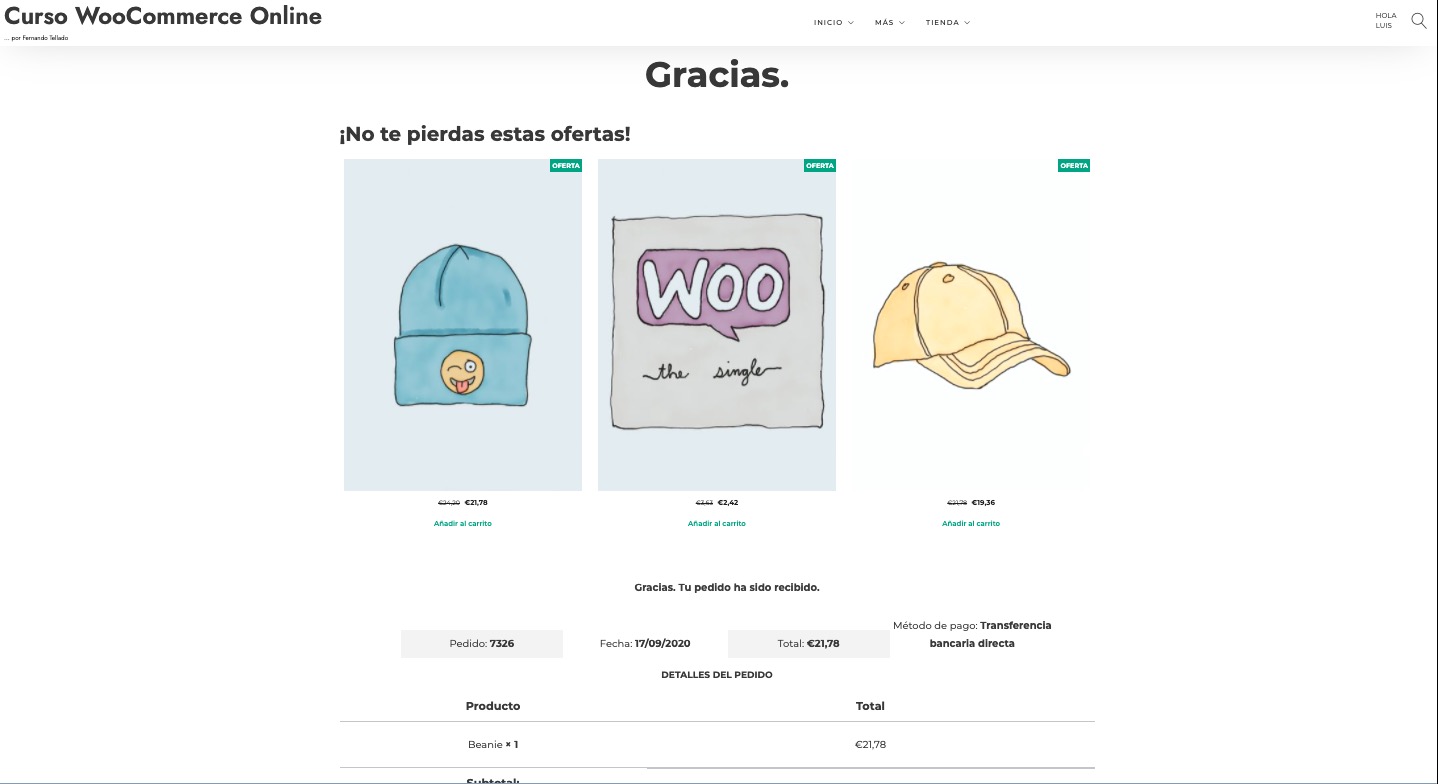 Y ya está, cuando un cliente finalice una compra, en vez de a la página de agradecimiento por defecto, se le llevará a la página personalizada que tú has creado, con sus personalizaciones, ventas cruzadas, cajas de suscripción a boletines de Newsletter o lo que le quieras meter.
