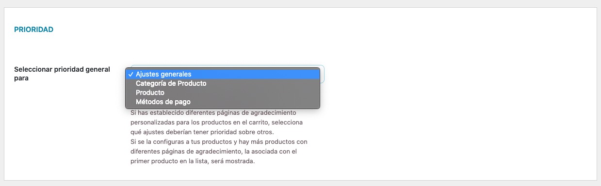 Para empezar, pásate por los ajustes para definir la página de agradecimiento por defecto.