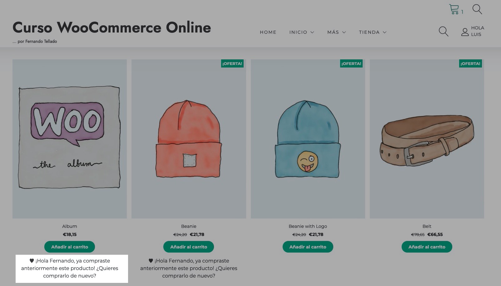 En una tienda online es muy importante cualquier personalización que nos recuerde que somos clientes habituales, y algo que habrás visto en los reyes del ECommerce, como Amazon, es que si estás viendo productos que ya has comprado te informa de ello.
