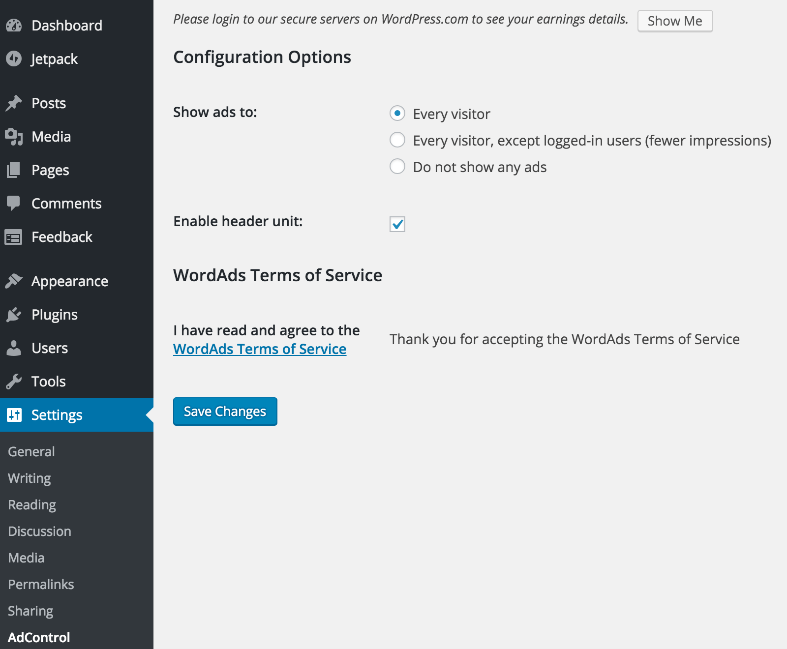 A partir de que tu sitio sea admitido, desde el plugin AdControl, también de Automattic, puedes empezar a generar ingresos con el sistema de publicidad de Automattic.
