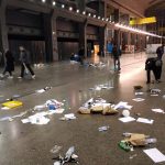 Para poner las cosas más emocionantes, nos encontramos toda la nave llena de basura de un evento anterior, y ni rastro de equipo de limpieza, así que nos tocó limpiar todo el local a la mañana siguiente, para lo que Pablo fue muy previsor y se trajo escobas y mochos.