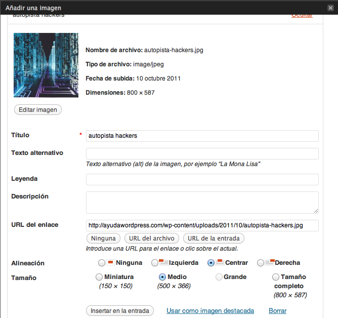 Pero ahí no acaba la cosa, pues hay una casilla que puedes marcar antes de subir archivos y que te evitará más de un disgusto, pues ahora puedes definir que las imágenes, al subirse, antes se redimensionen al tamaño grande elegido en los «Ajustes -> Multimedia«, de este modo evitas errores al cargar imágenes demasiado grandes y de paso ahorras espacio en tu servidor.