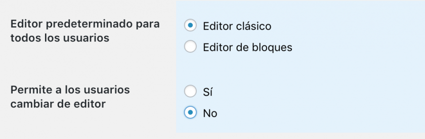 Otra opción es desactivar completamente el editor de bloques.