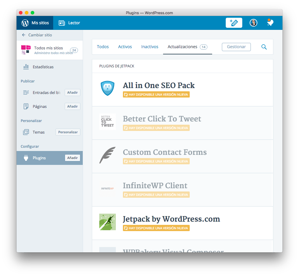 - Actualizaciones de plugins