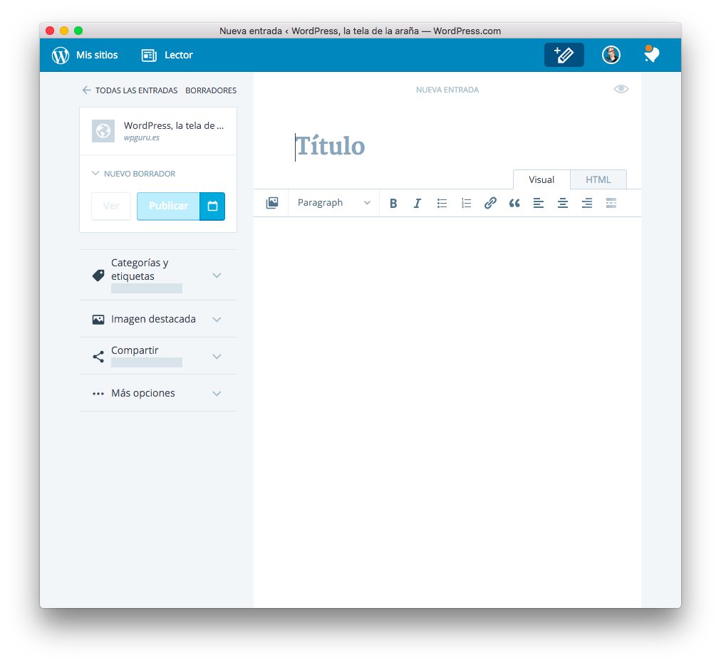 Dentro es como si estuvieses en WordPress.com, exactamente igual, con todo las utilidades: