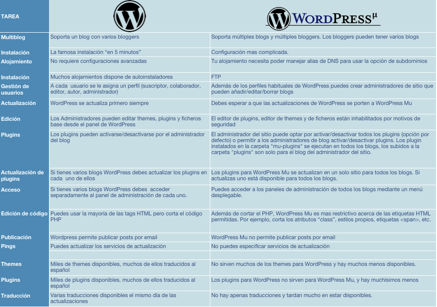 Son muchas las virtudes de WordPress en su conjunto pero aún así hay diferencias entre los distintos sabores de WordPress, y si hay muchas comparativas – algunas muy obvias – entre WordPress.org y WordPress.com, no he visto tantas frente al WordPress Multiusuario.