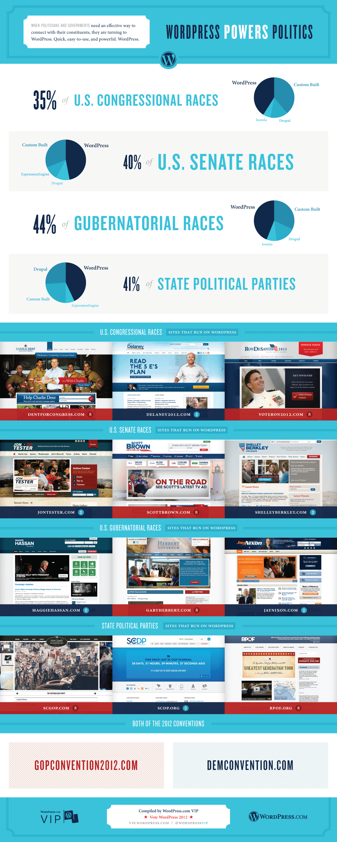 - WordPress se utiliza para el 35% de las campañas electorales al congreso