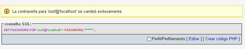 Si todo fue bien, PHPMA nos avisará que el password se ha cambiado.