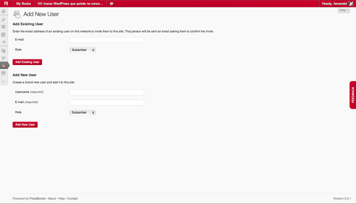 Y es que hace poco PressBooks ya está disponible cómo plugin WordPress para que puedas usarlo sin restricción alguna. Simplemente lo descargas y lo instalas en una instalación limpia (importante) de WordPress Multisitio, donde cada sitio, cómo en la versión «.com«, será un nuevo libro.