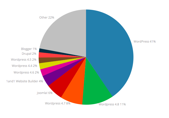 Si revisamos el último informe de Builtwith WordPress está detrás del 53% de todo Internet, comparado con el resto de CMS.
