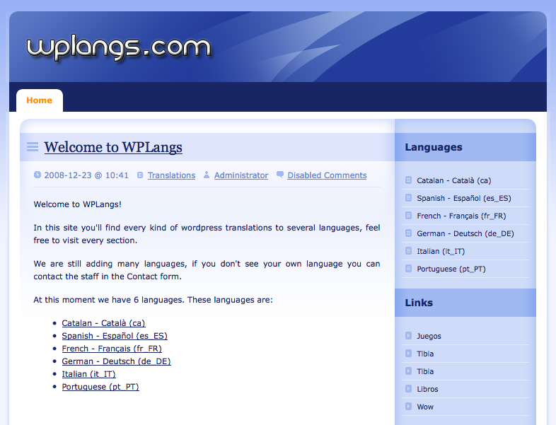 Uno se encuentra todo tipo de cosas por ahí y a veces no sabe como calificarlas. Hoy, probando un nuevo buscador, doy con un sitio llamado WPLangs en el que se ofrece «WordPress en tu idioma». Hasta ahí bien …